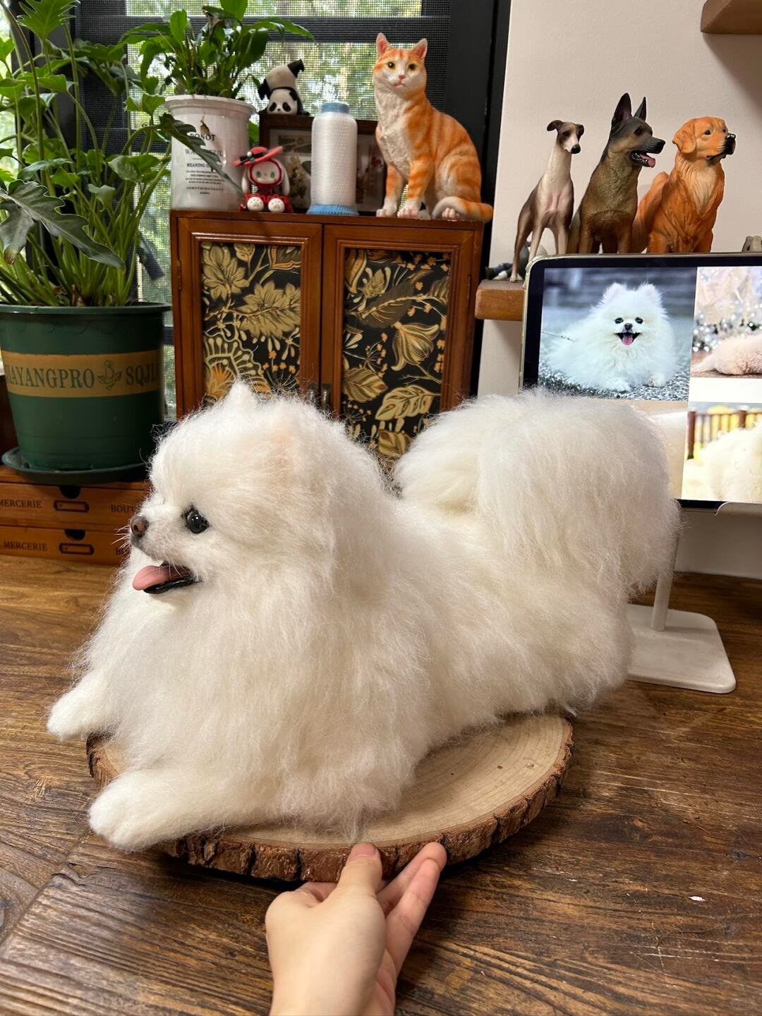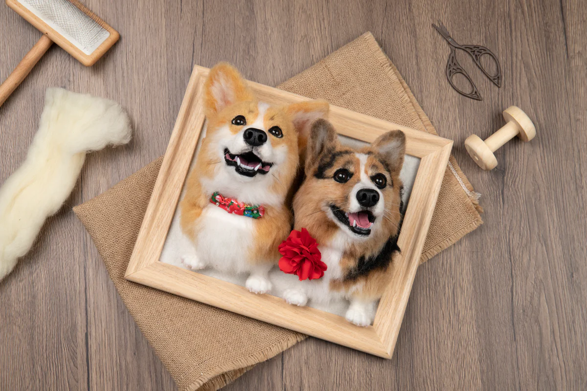 Each petsdear is custom-made exclusively for your pet using the needle felting technique with 100% natural, soft wool. Needle felting involves compressing petsdear together by hand to create specific textures and shapes. The nose and mouth of each petsdear are also handmade. Full-body petsdearinclude a wireframe to support the stability and mobility of the paws and tail.