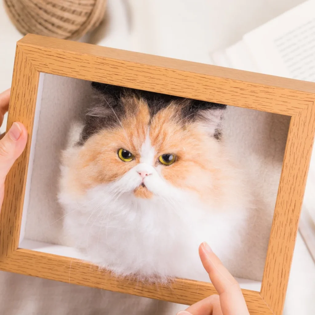 To achieve the most realistic look, we carefully mix wool fibers to match the exact colors and tones of your pet’s fur. Each strand is then planted little by little, layer by layer, to create a lifelike texture and depth.